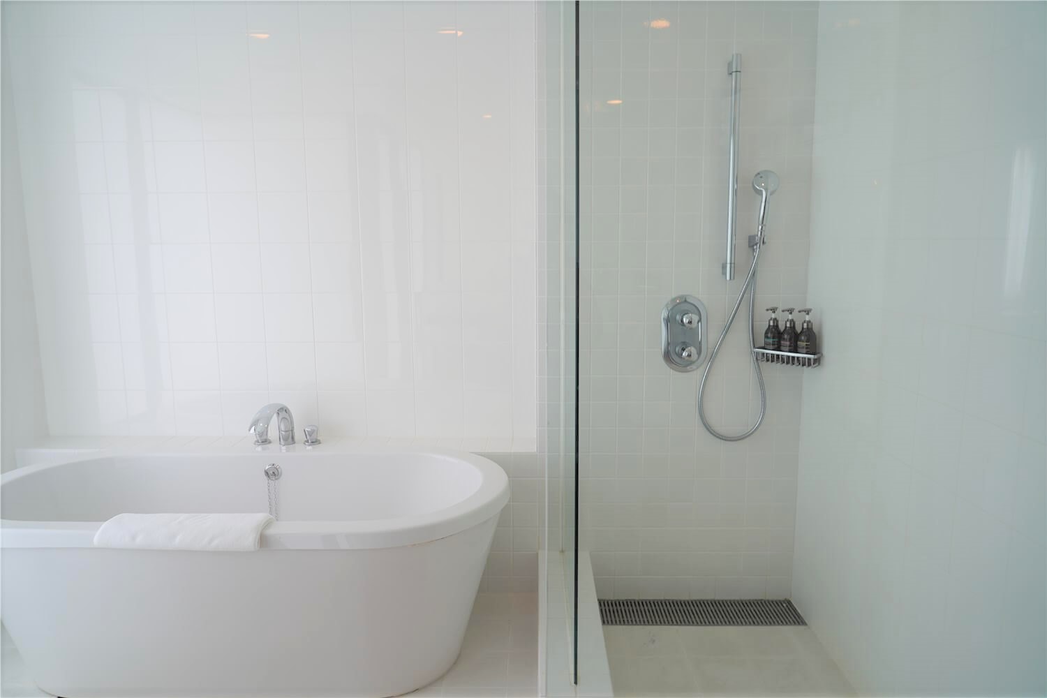 バスルームは白を基調にしてて、シャワールームが別途あり!