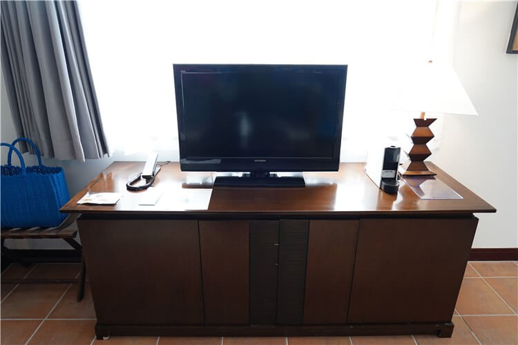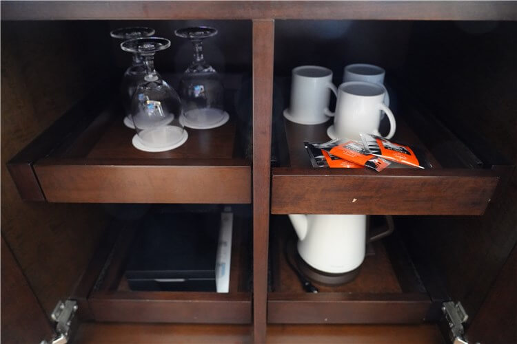 そしてこのテレビボードがチェストとなっており、ミニバー関係がすべてまとまっている感じなんです。