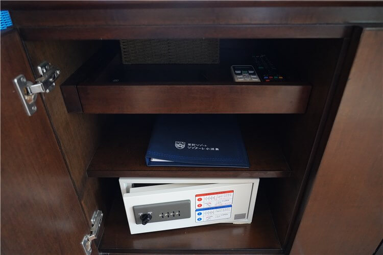 こちらには館内の説明書だったり、テレビ、エアコンのリモコン、セキュリティーBOXがあります。
