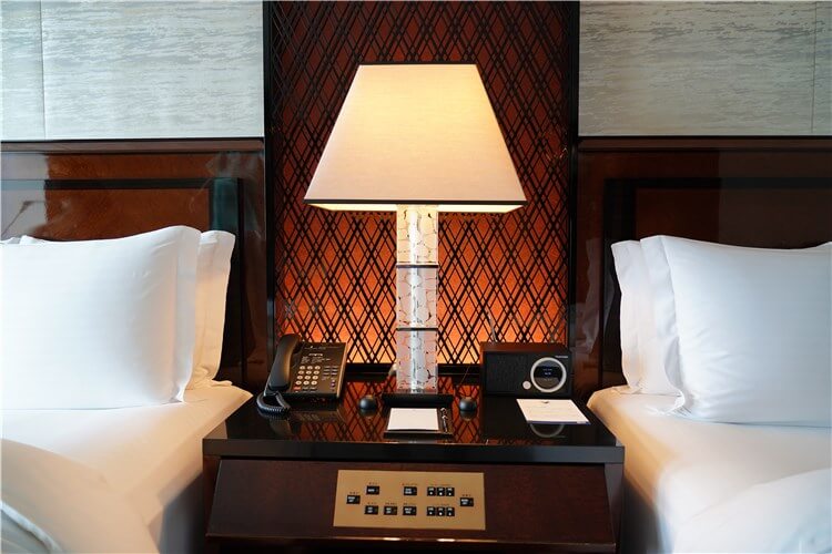 そしてツインベッドがあり中央のチェストには電話、クロック、USBなどもちゃんとあります。