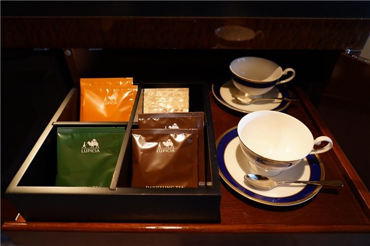 チェストの扉を開けて右側は3段になっており、一番上には紅茶類があります。