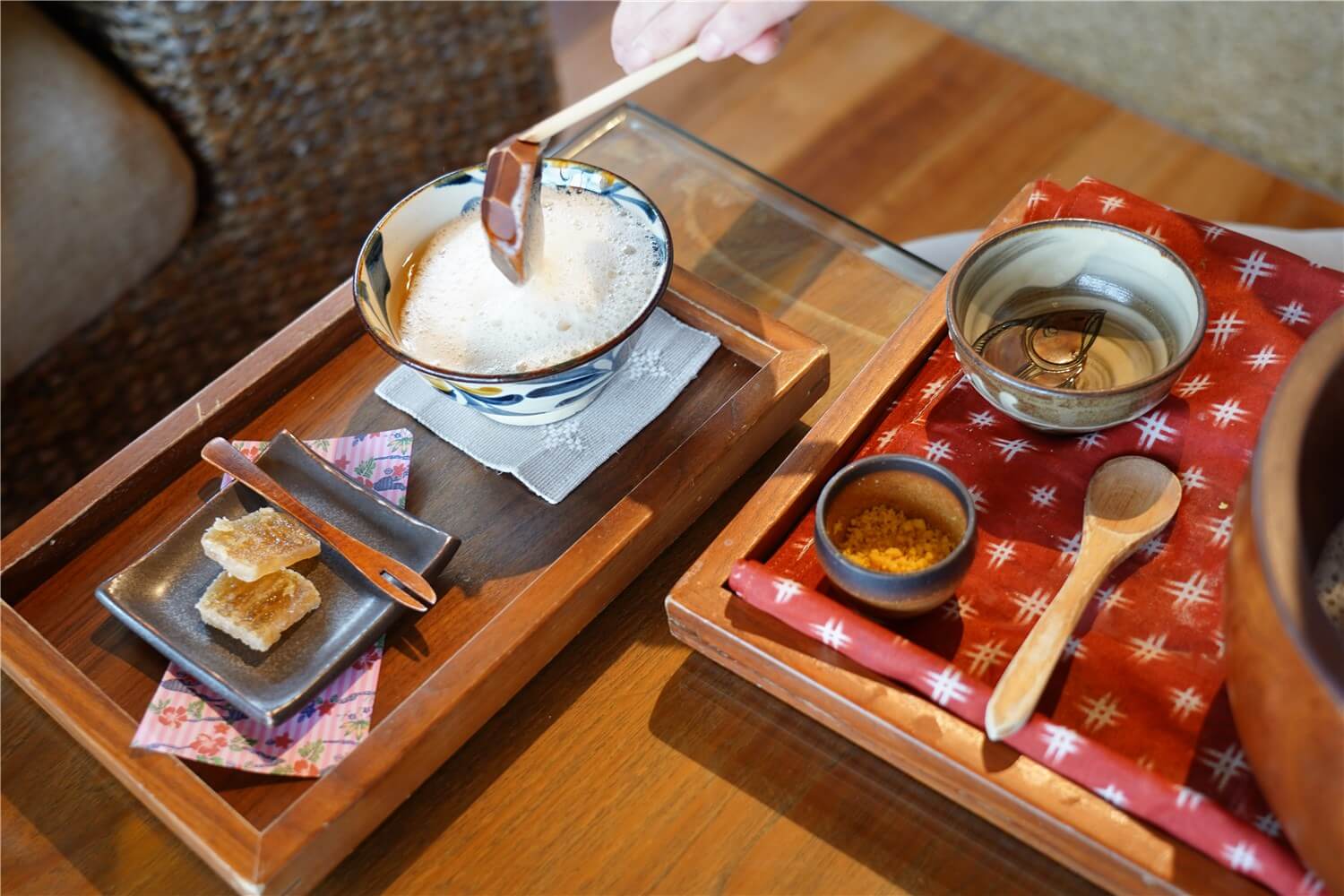 琉球アフタヌーンティーは和のイメージということもあり、ぶくぶく茶が付いてきます!