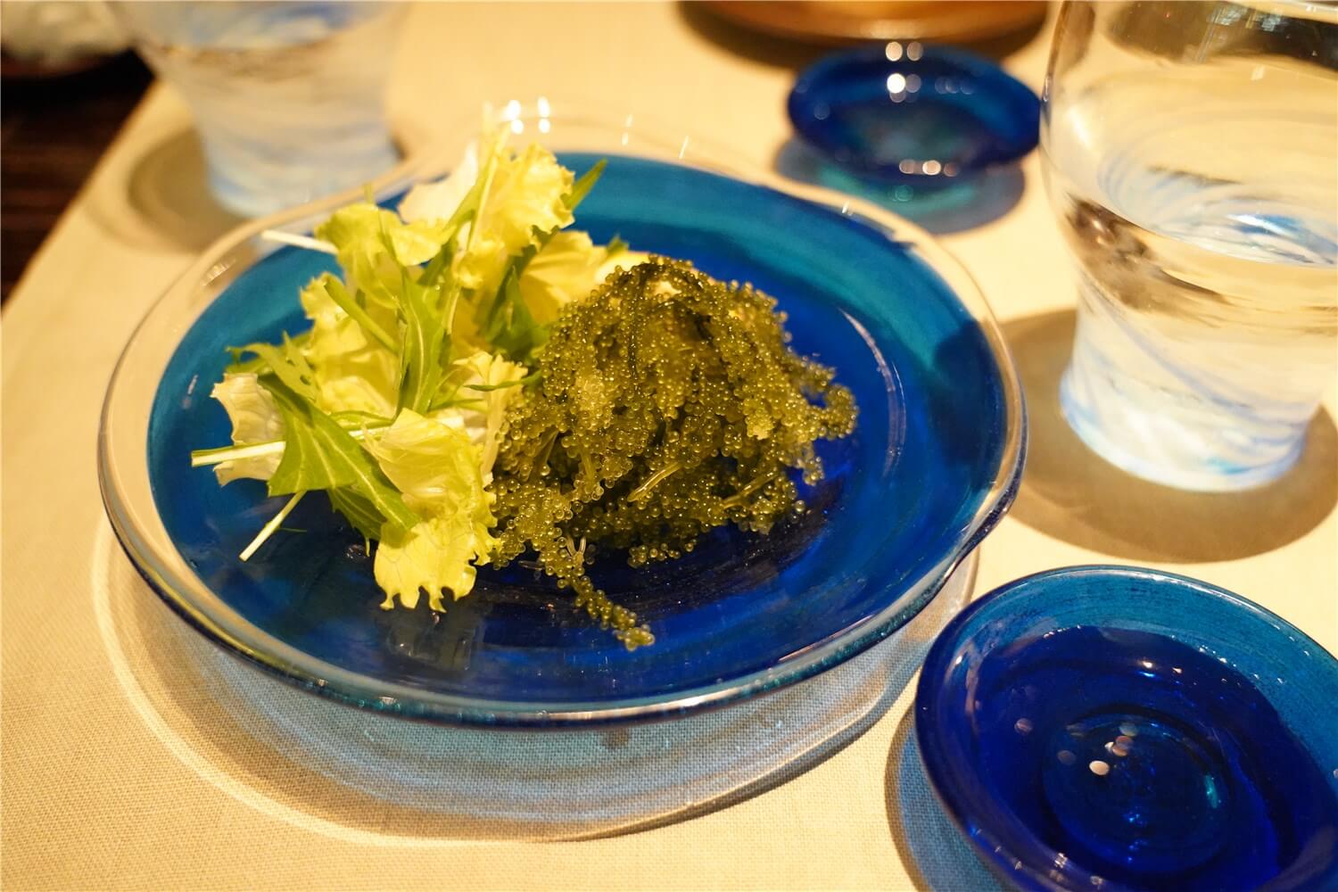 まず最初にオーダーしたのは、定番のラフテー、海ブドウになります。