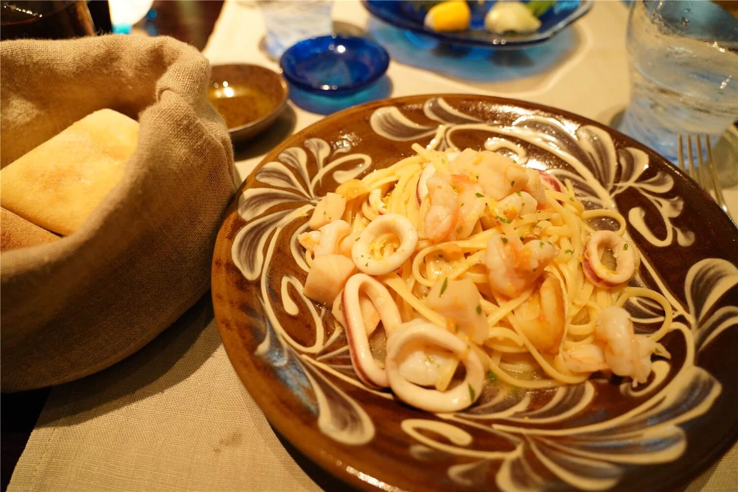 妻はパスタをオーダーしていました。しかし、キッズプレートを食べ切った息子がこちらのパスタを横取りしていました(笑)