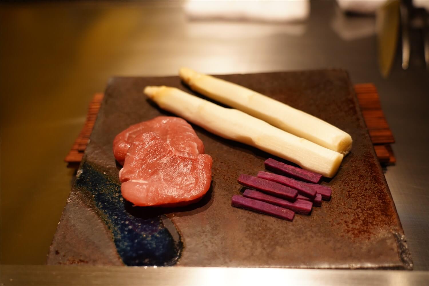 そしてそのあとにはアグー豚、ホワイトアスパラガス、を調理してくれました。