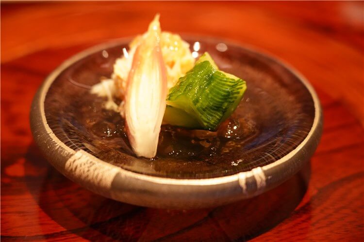 お刺身や茗荷とカニの料理でした。