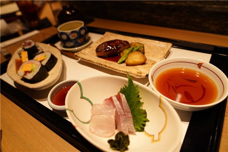 お寿司(巻物)、ハンバーグ、お刺身といったラインナップでした。