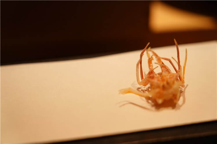 「ひのきざか - 天麩羅」では、シェフが厳選した旬の食材をお客様のご注文に合わせ丁寧にお揚げします。最高級のベニ花油一番搾りを使うことで軽い口あたりでありながら、風味豊かな天麩羅をお楽しみいただけます。