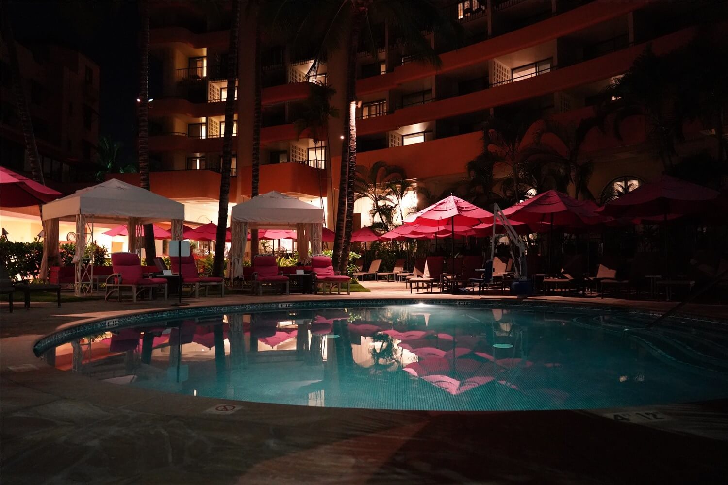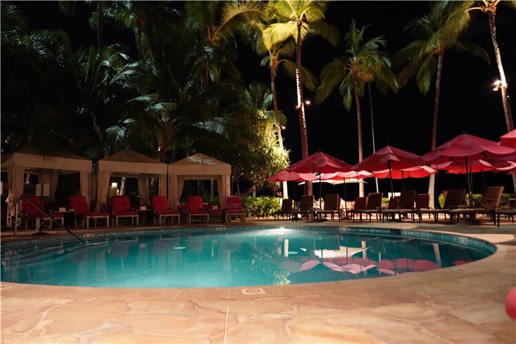 ロイヤル ハワイアン ホテルの夜のプールサイドはとてもロマンティックな照明と空間に早変わり!!