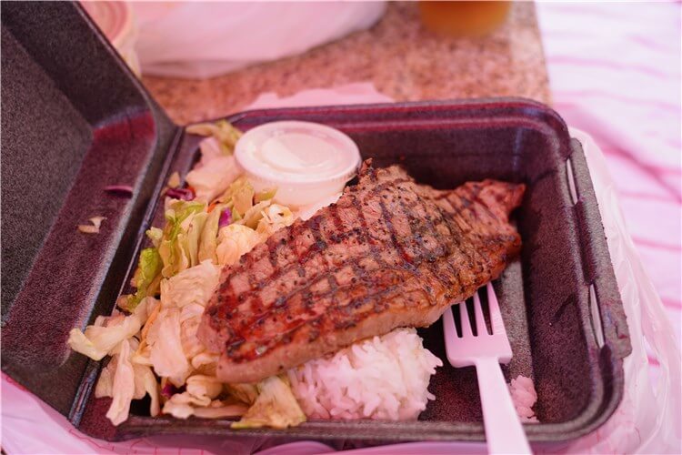 そしてランチタイムになったので、一旦プールを出て近所のテイクアウトでステーキを買ってきました。