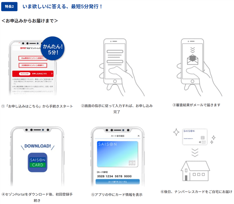 申込み後に審査結果がOKであれば、「セゾンPortal」アプリをダウンロードして初回登録をすませばそこから利用が出来るようになりますよ!