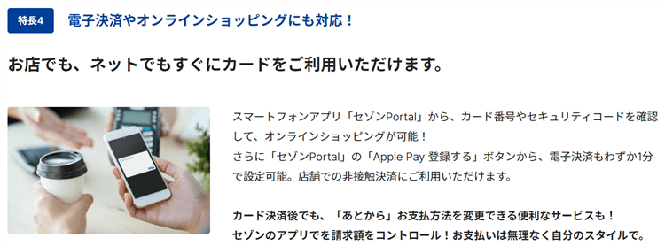 セゾンカードデジタル CONNECTは電子決済やオンラインショッピングにも対応しています。