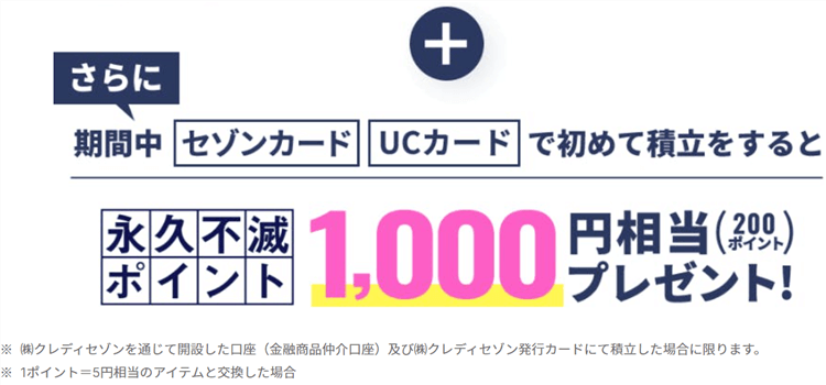 更に今回のカードで初めて積立をすると1,000ポイント!!