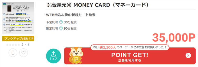 今回モッピーで貰えるポイントは35,000Pとなります。