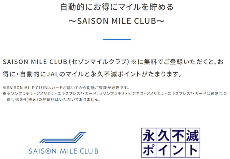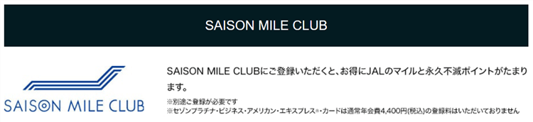 セゾンプラチナビジネスアメックスはSAISON MILE CLUB(セゾンマイルクラブ)が無料!JALマイルと永久不滅ポイントがWで貯まる!JALマイル還元率最大1.125%!
