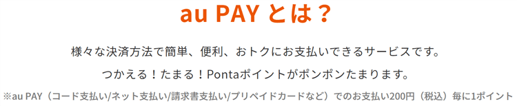 au PAYで支払いをした場合、200円(税込)で1Pontaポイントが貯まるようになっています。