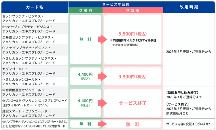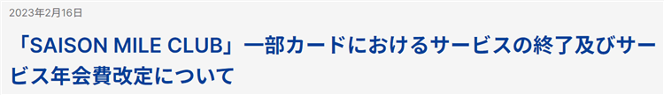 2023年2月16日に突如SAISON MILE CLUB(セゾンマイルクラブ)のサービス終了と年会費改定が発表されました。