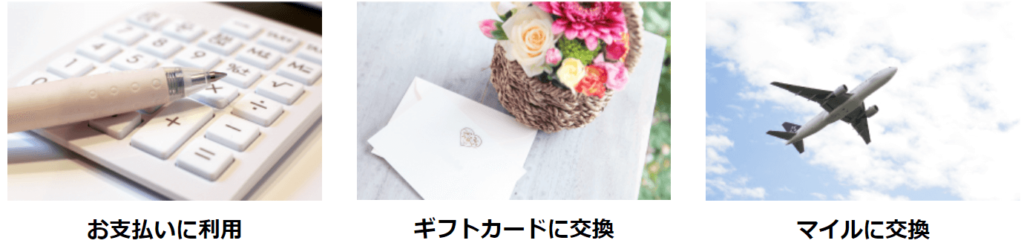 貯めたポイントは日々の支払いにも利用が出来ますし、色々なものに交換ができます。