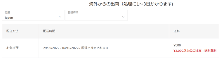 そして配送料ですが、通常は500円かかります。