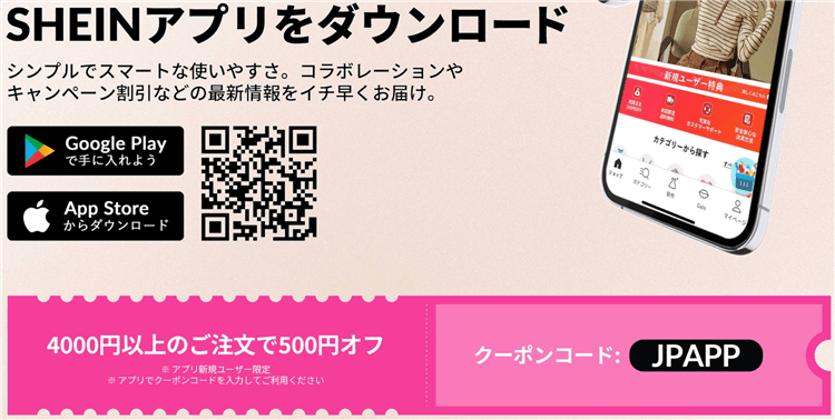 3.SHEIN(シーイン)のアプリダウンロードでクーポンをGET!