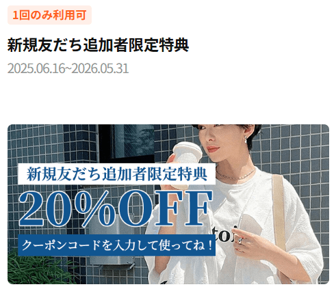 LINE公式アカウントの友達追加でもお得なクーポンが貰えちゃいますよ!
