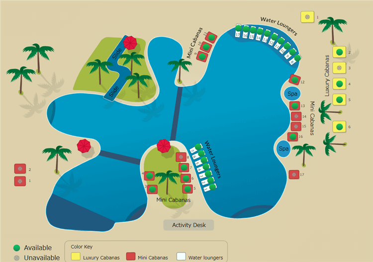 ただし、プール内の専用カバナ、一部のチェアの利用においては有料となっています。