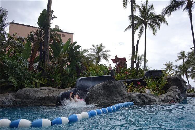シェラトン ワイキキ ホテルのヘルモア プレイグラウンドはウォータースライダーが2種類!!子供たちも大満足のプール!!