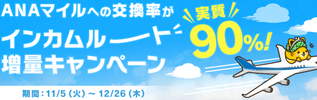 - インカムルートで90%でANAマイル交換!