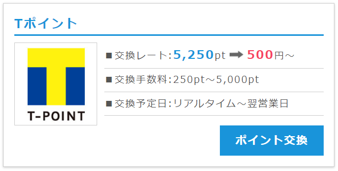 - 残ったポイントは現金もしくはTポイントに交換