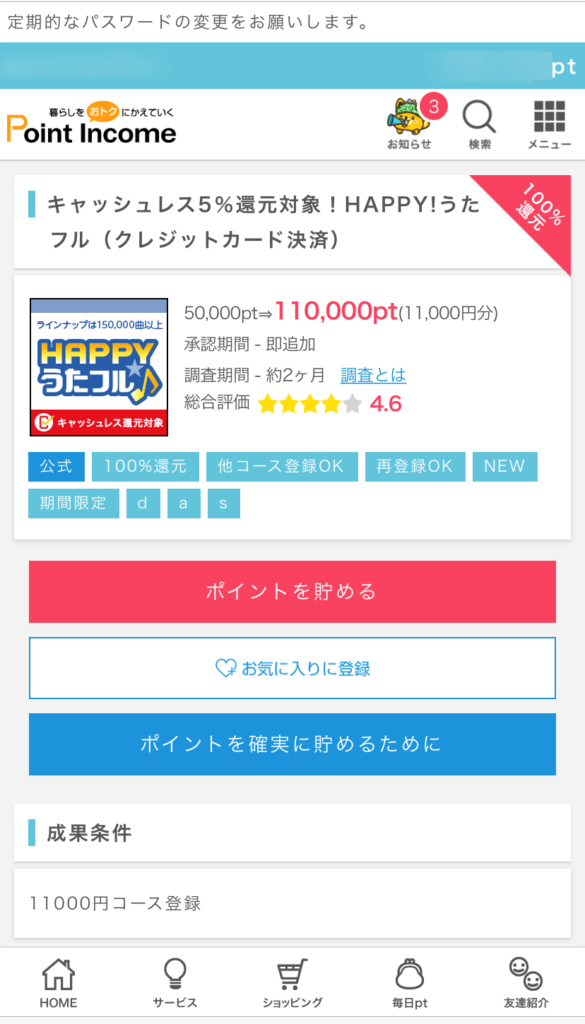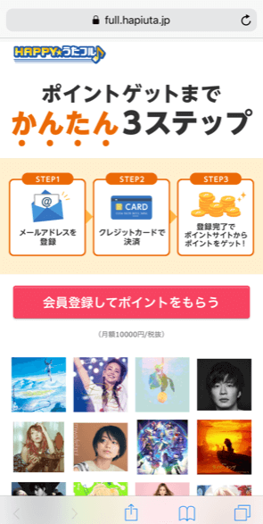 こちらはスマートフォンからの有料会員になることでポイントが貰えます。
