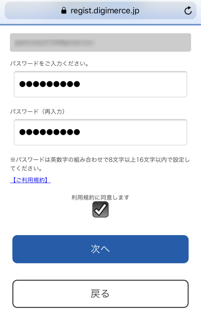 次はパスワードの設定です。完了したら「次へ」をクリック。