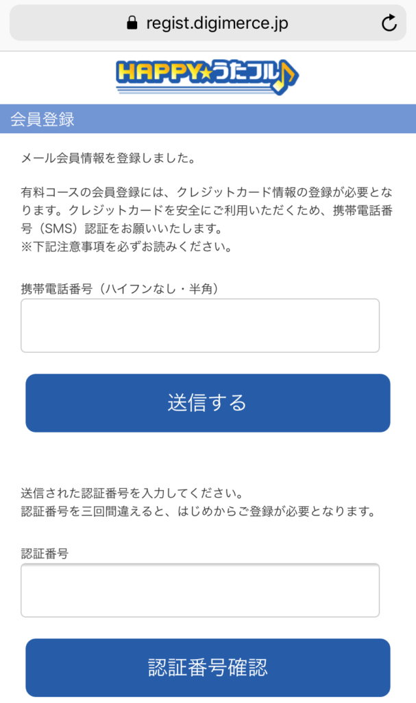 次は認証を取るために携帯番号を入力して認証番号を得ましょう。