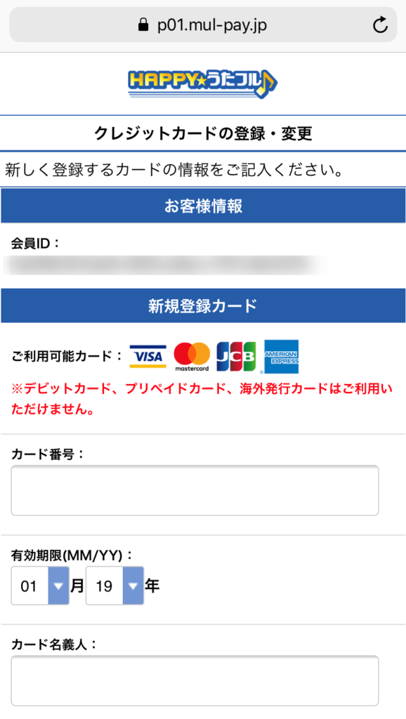 次は支払い方法の条件であるクレジットカード情報を入力しましょう!
