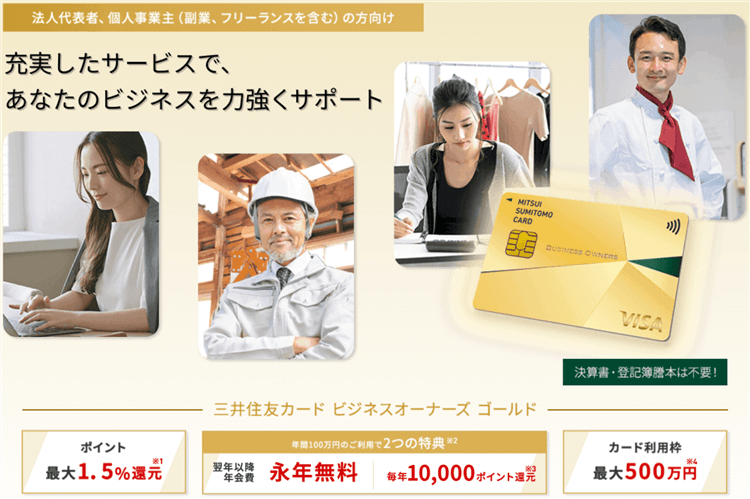 上記のような方にとっては、三井住友カード ビジネスオーナーズ ゴールドはおすすめです。