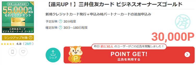 モッピーから三井住友カード ビジネスオーナーズ ゴールド 発行方法について