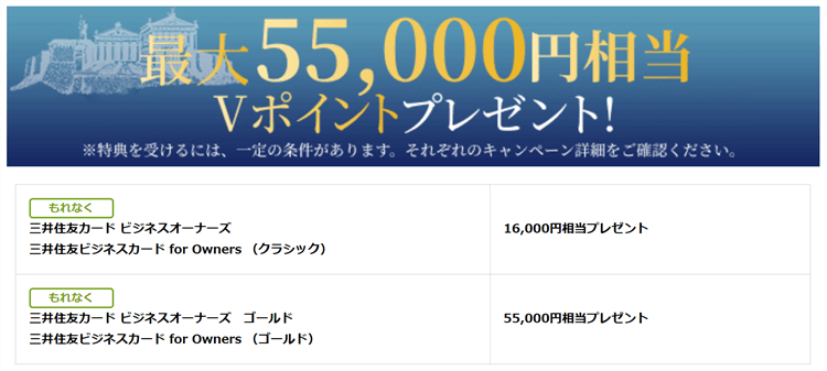 ※他三井住友カードの券種をお持ちの方でも、三井住友カード ビジネスオーナーズ ゴールドが初めての場合は対象となります