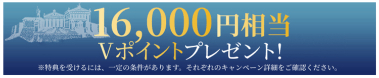 条件は期限内に30万円以上のカード利用で16,000円相当のVポイントがもらえるキャンペーンになります。