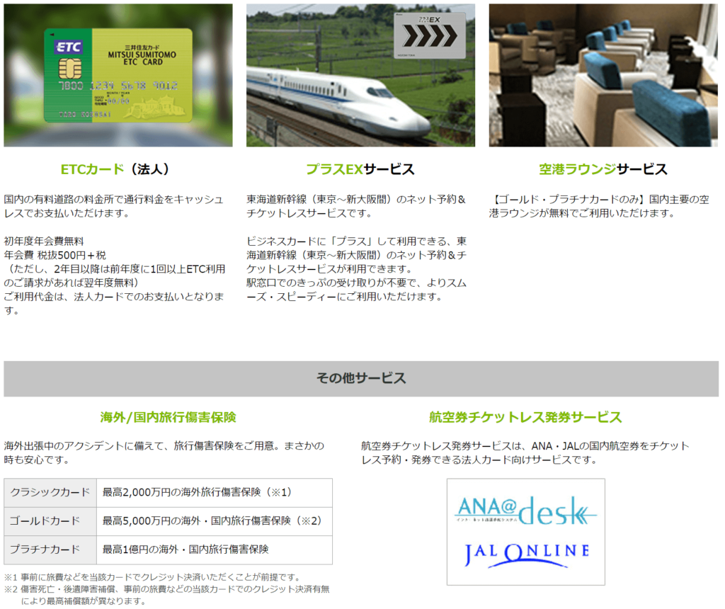 ビジネス向けとしてETCカードの利用、新幹線のネット予約などもスムーズに利用が可能です。