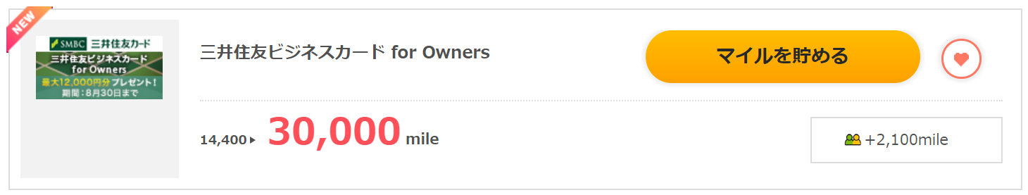 三井住友ビジネスカード for Owners新規発行で41,000P(20,500円相当)貰う裏ワザ!