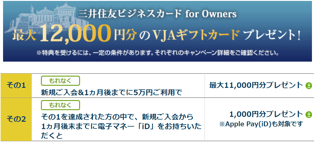 三井住友の新規入会キャンペーンで最大12,000円相当も合わせてGET!