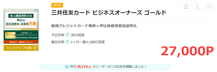 続いては「三井住友カード ビジネスオーナーズ ゴールド」です。