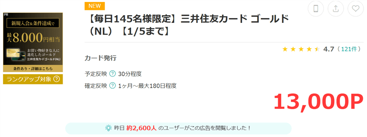 三井住友のゴールドカード(ゴールド(NL)、オーナーズゴールド、oliveフレキシブルゴールド)の発行はポイントサイトがおすすめ
