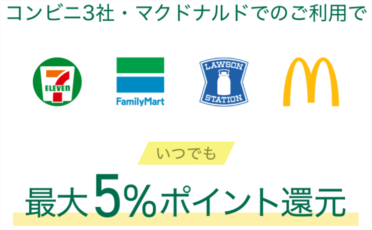 大手コンビニ3社、マクドナルドでの利用であれば+2%還元となります!