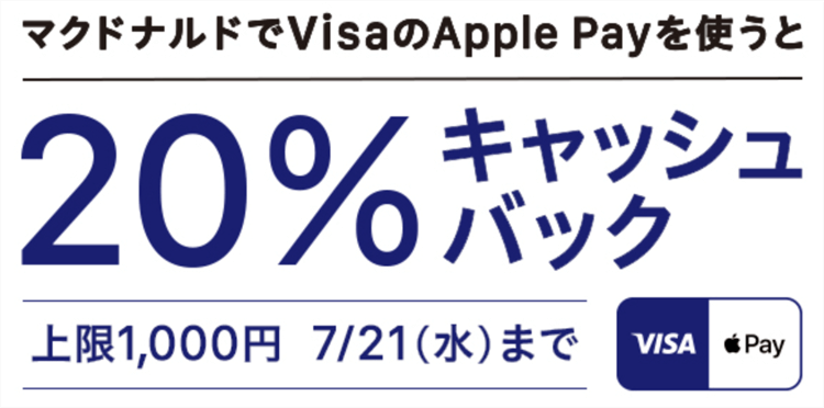マクドナルドでVisaのApple Payを使うと20%キャッシュバック!!