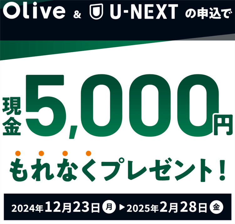 - Olive&U-NEXTキャンペーンで5,000円