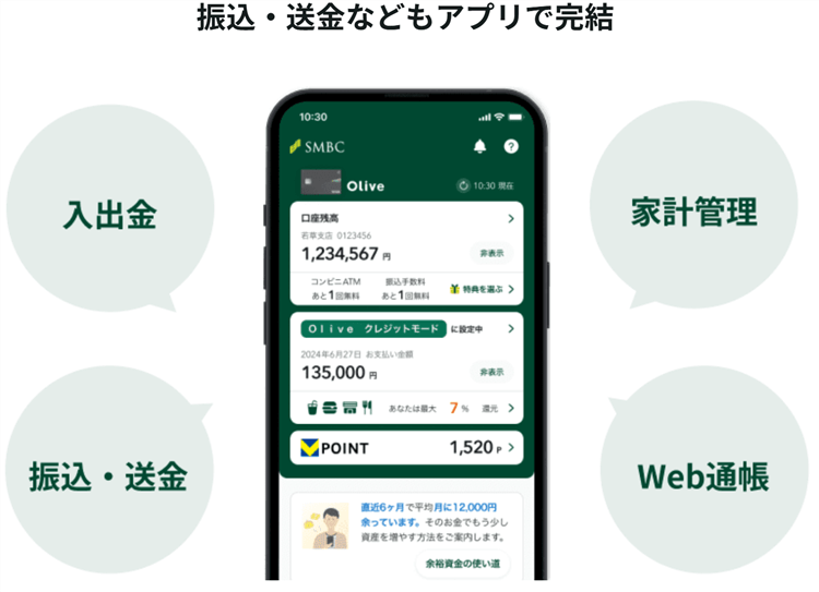 このように三井住友銀行のOliveは全てスマホのアプリで完結して管理ができるようになっています。
