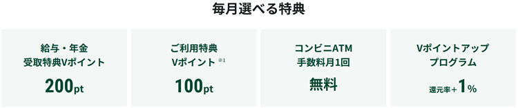- 給与・年金受取特典Vポイント:200ポイント