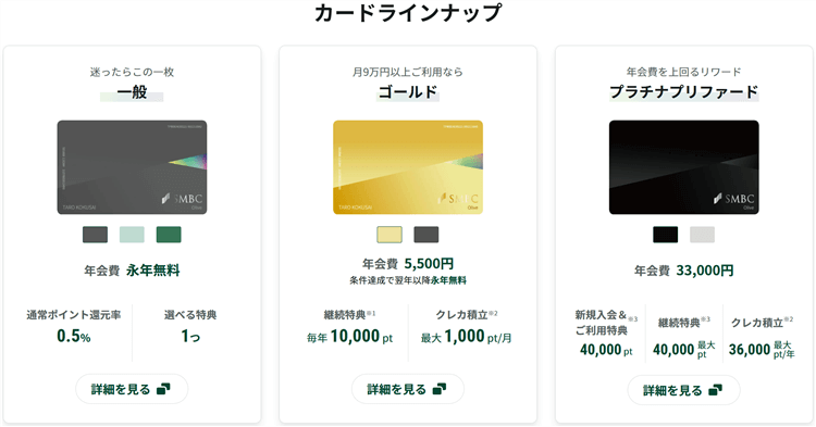 三井住友銀行のOliveですが選べるクレジットカードは全部で3種類あります。