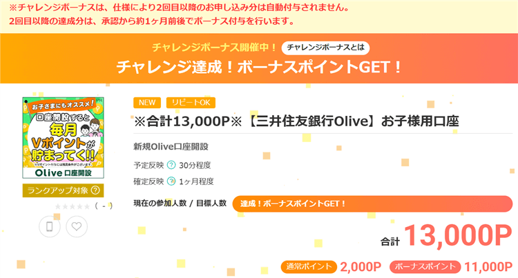 - 三井住友銀行のOliveで13,000P
