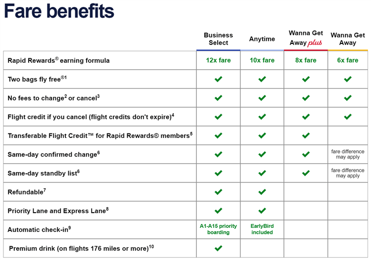 サウスウエスト航空のチケットは4種類!一番安いのはWanna Get Away!ファーストクラス、ビジネスクラスはない!